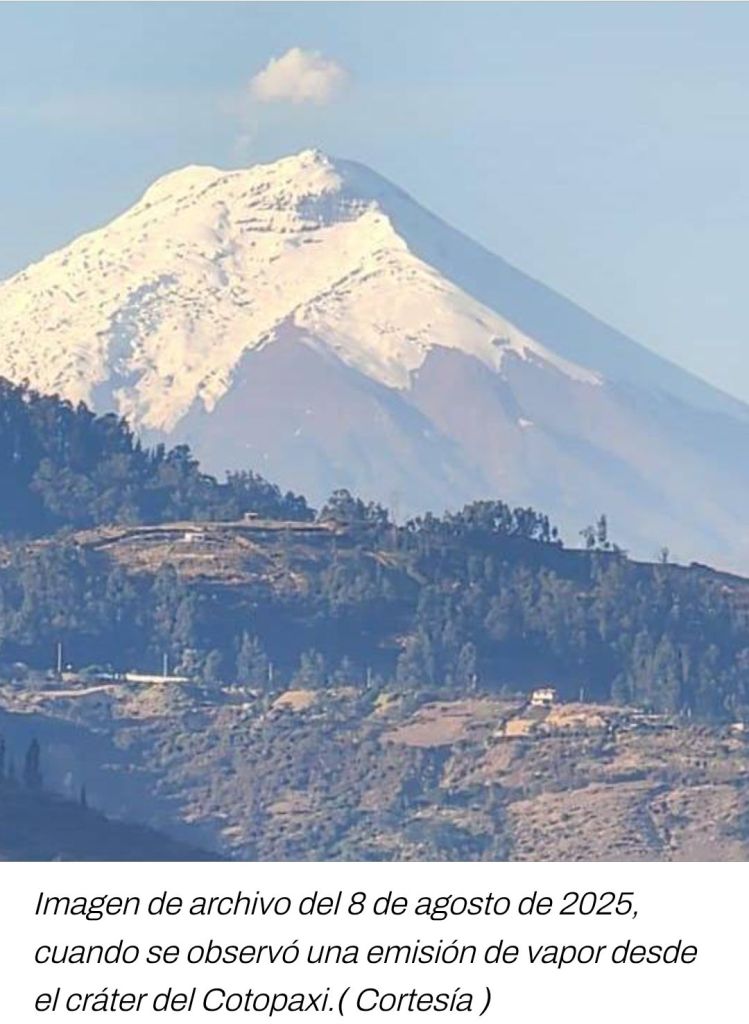 La actividad del Cotopaxi sorprendió a los ciudadanos la mañana del pasado 8 de agosto, cuando se reportaron nuevas emisiones desde el cráter. Se trató de una nube blanca que, según confirmó el Instituto Geofísico a Ecuavisa.com, no fue una fumarola, sino vapor de agua, recurrente en los últimos meses.